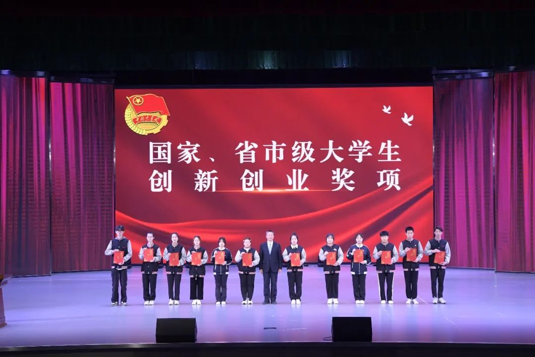党委副书记、校长姜国权为获国家、省市级大学生创业创新优秀学生代表颁奖