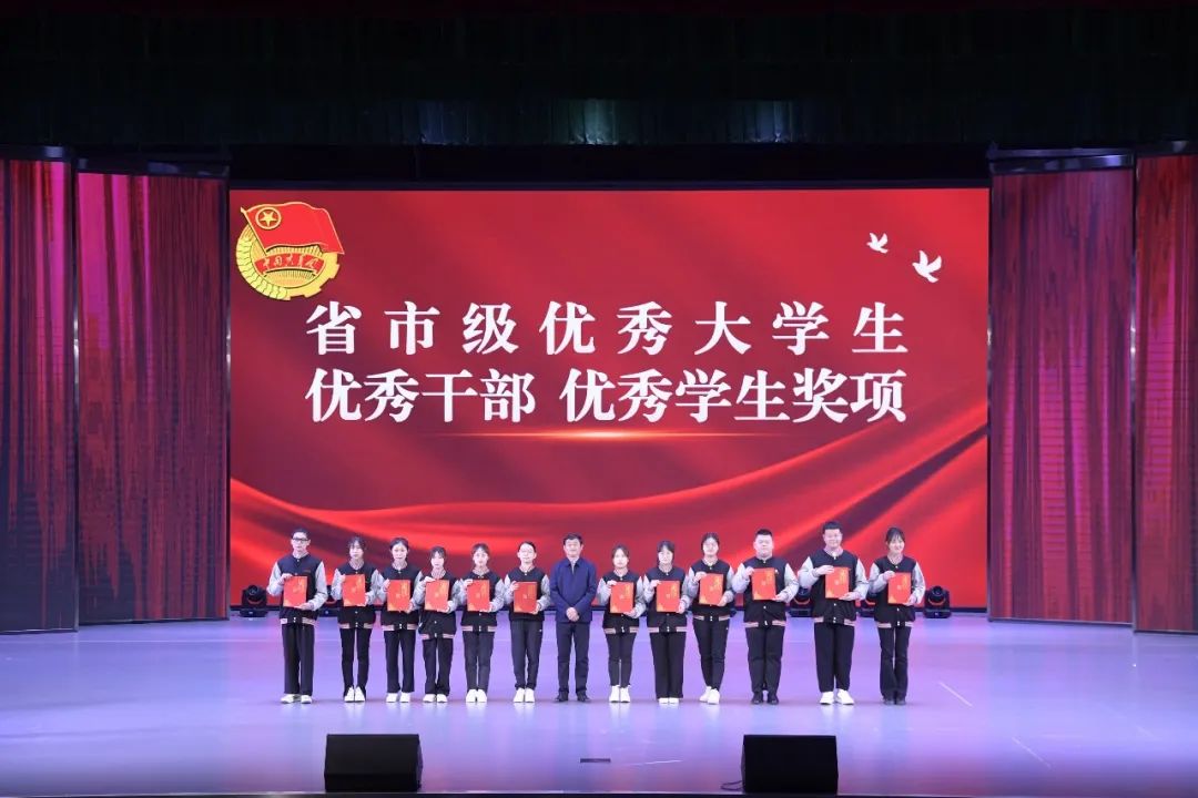 党委书记张万财为获省市级优秀大学生、优秀干部、优秀学生奖项学生代表颁奖