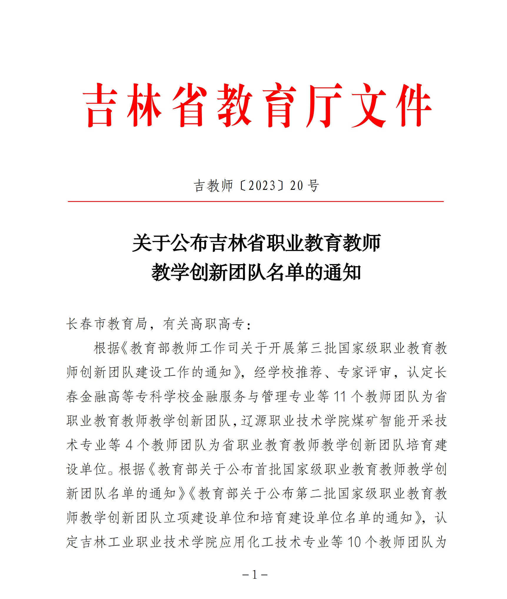 近日,吉林省教育厅公布吉林省职业教育教师创新团队名单。我校学前教育教师教学创新团队首次成功获批,并获得第三批国家级职业教育教师创新团队的省级推荐资格。此次成功入围,实现了我校省级教师教学创新团队零的突破,也是学校高质量发展所取得的阶段性成就。
