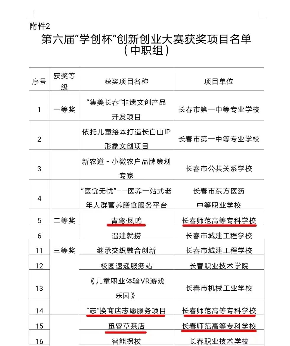 近日,长春市职业院校第六届“学创杯”创新创业大赛总决赛落下帷幕。我校斩获高职组一等奖2项、二等奖2项、三等奖5项,中职组二等奖1项、三等奖2项及优秀组织单位称号。