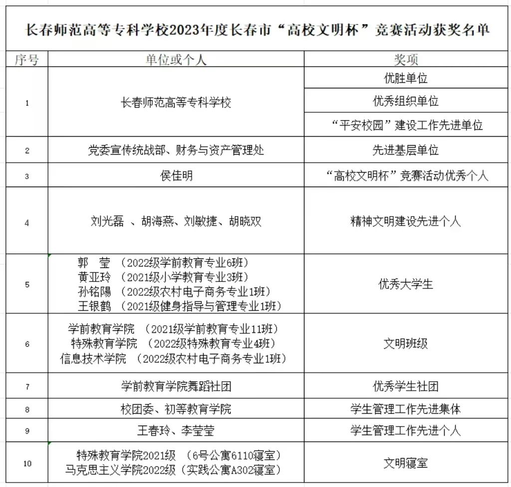 我校在2023年度长春市“高校文明杯”竞赛活动中荣获多项荣誉-国产一区二区日本在线-Changchun Normal College-官方网站
