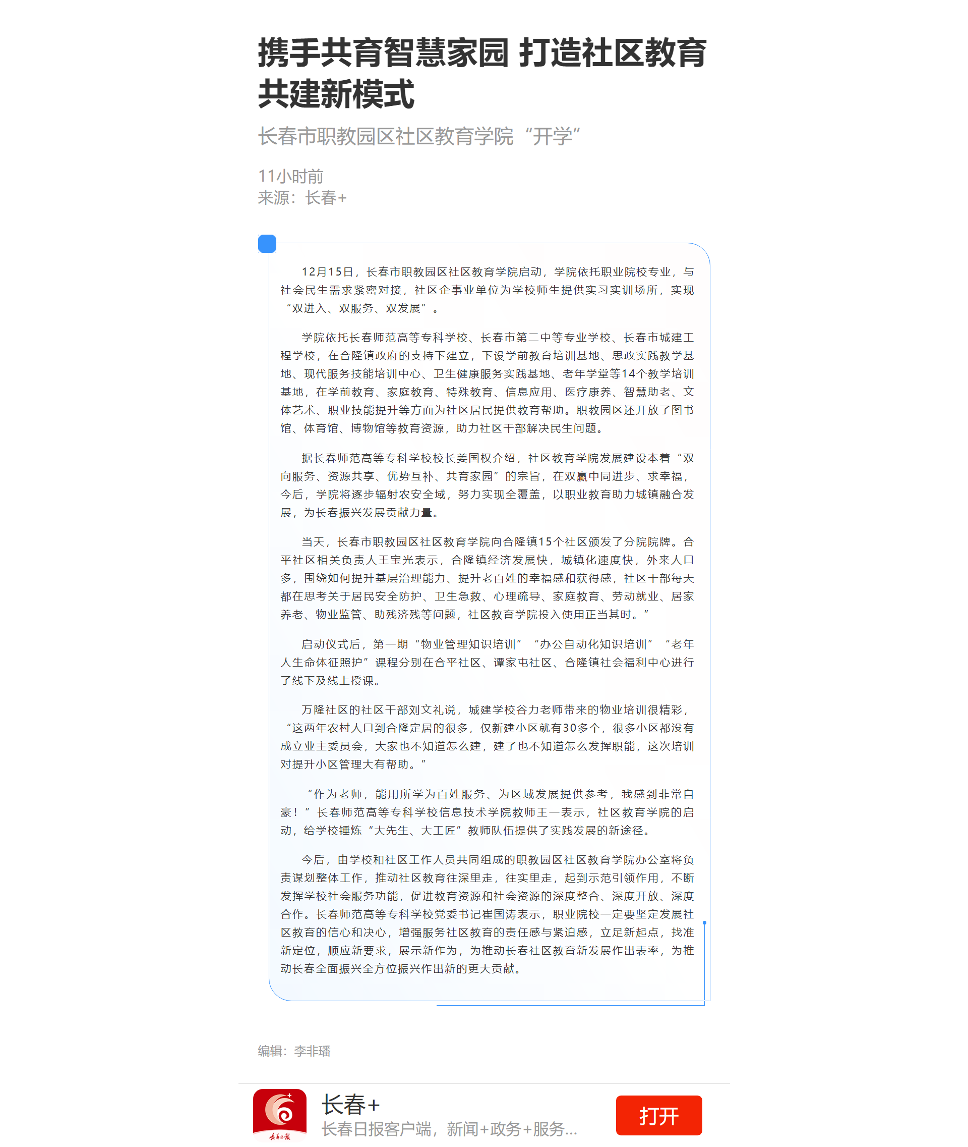 携手共育智慧家园 打造社区教育共建新模式-国产一区二区日本在线-Changchun Normal College-官方网站