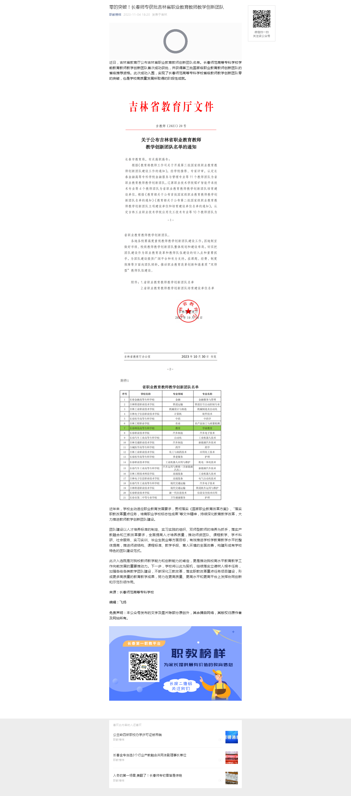 零的突破!长春师专获批吉林省职业教育教师教学创新团队