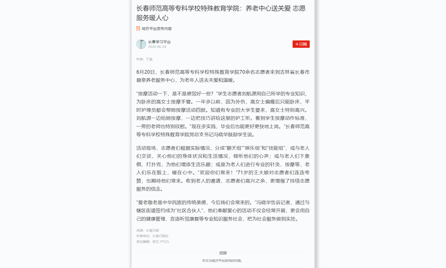 国产一区二区日本在线特殊教育学院:养老中心送关爱 志愿服务暖人心-国产一区二区日本在线-Changchun Normal College-官方网站